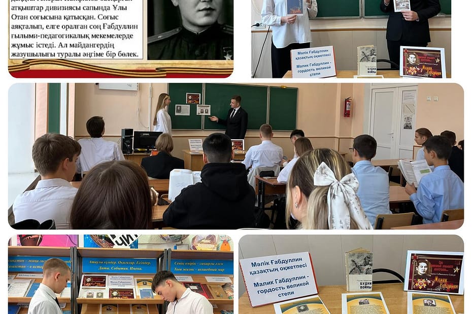 15 ноября – День Героев! Этот день призван показать молодому поколению заслуги казахских героев в сохранении целостности страны. В этот день в 1915 году родился Герой Советского Союза Малик Габдуллин (1915-1973), проявивший большую самоотверженность в борьбе с оккупантами в Великой Отечественной войне. В библиотеке была проведена тематическая беседа, посвященная 110-летию со дня рождения Героя Советского Союза, писателя, ученого, общественного деятеля М. Габдуллина. В мероприятии приняли участие учащиеся 9-х классов.