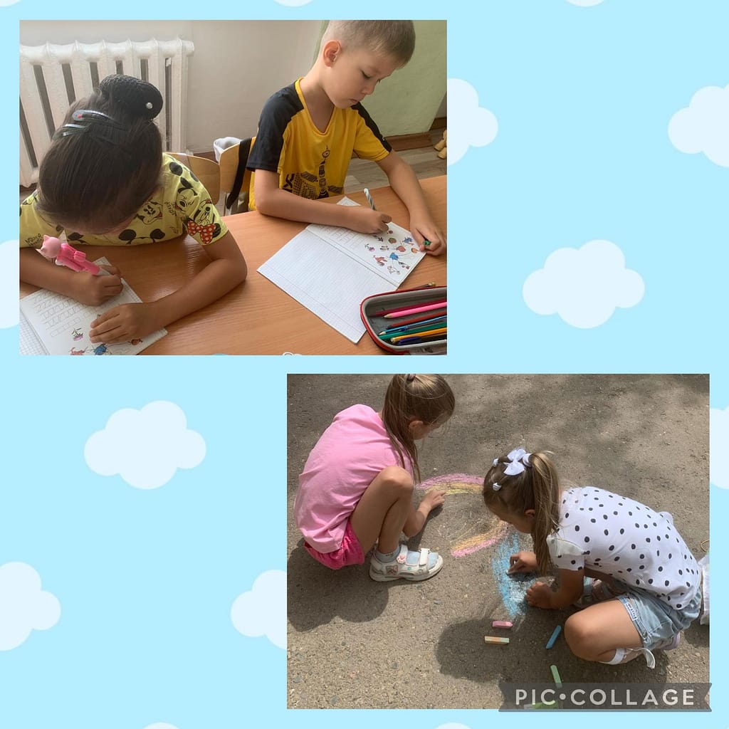Күннің соңында балалар «Көңілді жаз» тақырыбында асфальтқа түрлі-түсті борлармен сурет салып, жаз мезгіліндегі көріністерді бейнелеп, жұмбақтар шешті.