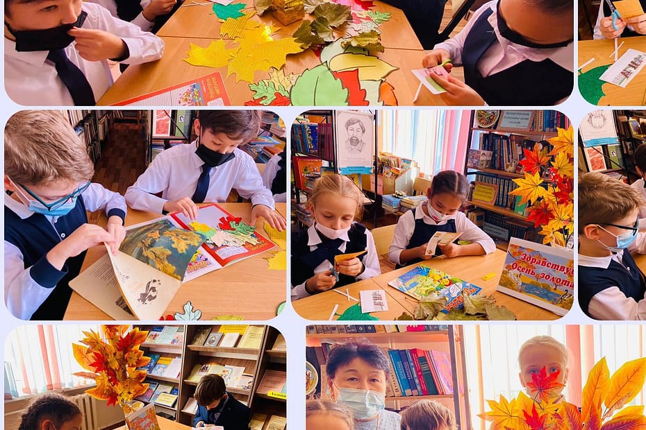 Вместе с библиотекарем Бедельбаевой З. К. учащиеся 4 “В” класса вспомнили, какая бывает осень: радостная, богатая урожаем, пышно убранная и грустная с каплями мелкого дождя. Но все равно родная земля в это время года всегда прекрасна, привлекательна и очаровательна. Далее, учитель художественного труда Жанасылова Р. Б. рассказала учащимся об осенних месяцах (чем они примечательны, как назывались в старину). Ребята узнали много интересного о приметах осени, вспомнили пословицы, поговорки, разгадывали загадки, мастерили осенние книжки- малышки , которые получились яркие, красочные и интересные. Кроме того, к данному мероприятию была подготовлена книжно- иллюстративная выставка “Королева осень” , на которой были представлены книги с познавательной информацией, рассказы писателей, репродукции осенних пейзажей. В завершении мероприятия в исполнении учащихся 5 классов прозвучали стихотворения известных русских поэтов. Стихи читали разные, но все были посвящены одному необыкновенно красивому, самому живописному времени года – осени. #неделяэстетическойграмотности