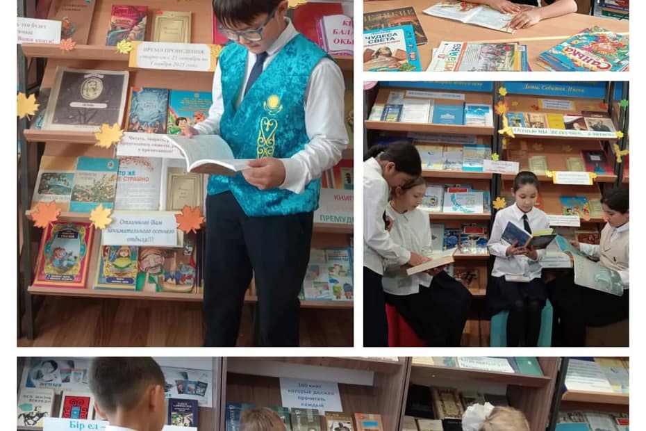 Цель этого мероприятия формирование интереса к посещению библиотеки, воспитание уважения к книге, знаниям. Этому замечательному времени года в библиотеке КГУ ОШ №4 посвящена книжная выставка-обзор «Осенью мы не скучаем, а читаем!». Беседа о пользе чтения была интересной и увлекательной.
